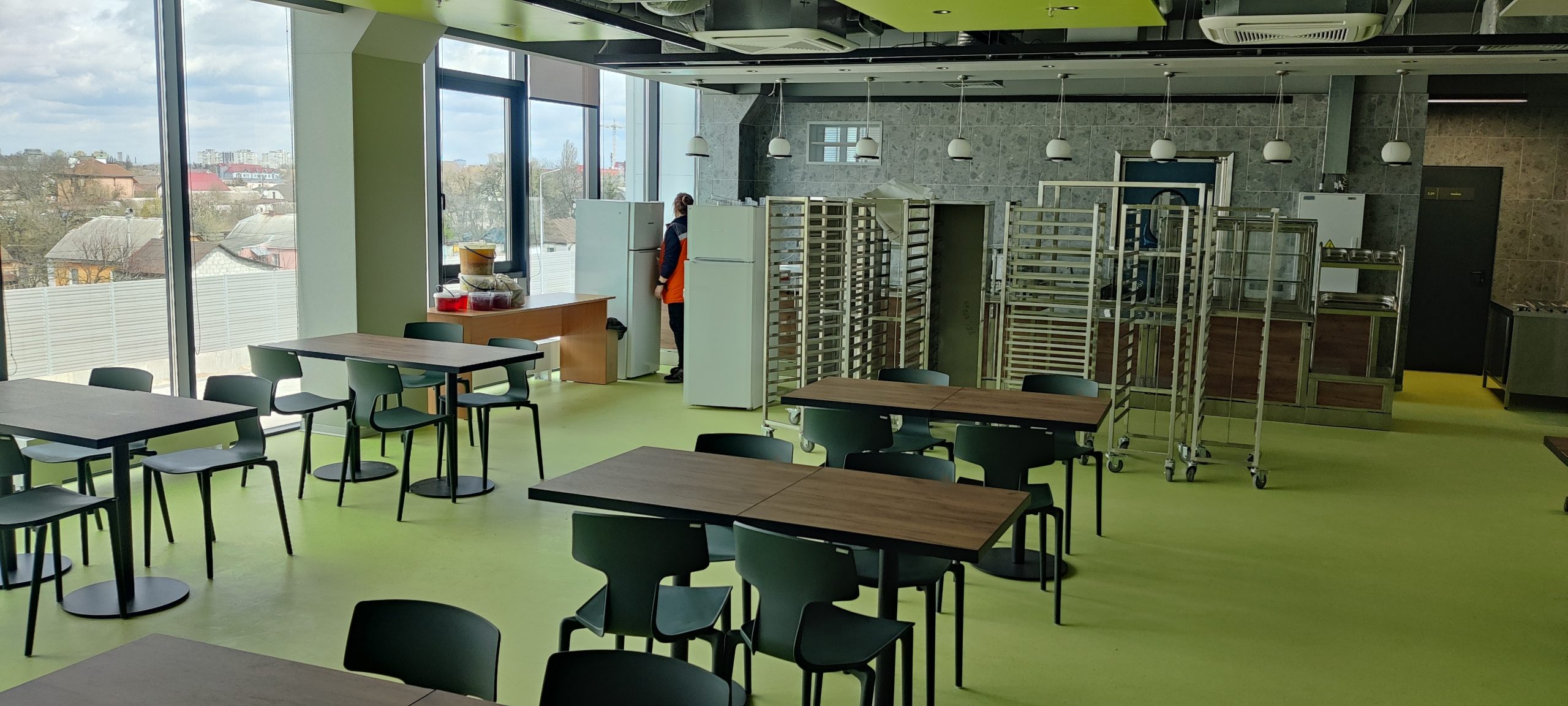 - Безкоштовне гаряче харчування: є своя їдальня з щоденним приготуванням свіжих страв;